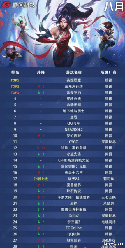 这个转变不仅是个人选择,更像是一记重锤,敲在了本就处于下坡路的《DNF》身上,数据显示,8月网吧游戏热力榜中,《DNF》仅排在第6位,这样的成绩放在几年前几乎不可想象。要知道,在安图恩、卢克版本的辉煌时期,《DNF》曾长期稳居前三。