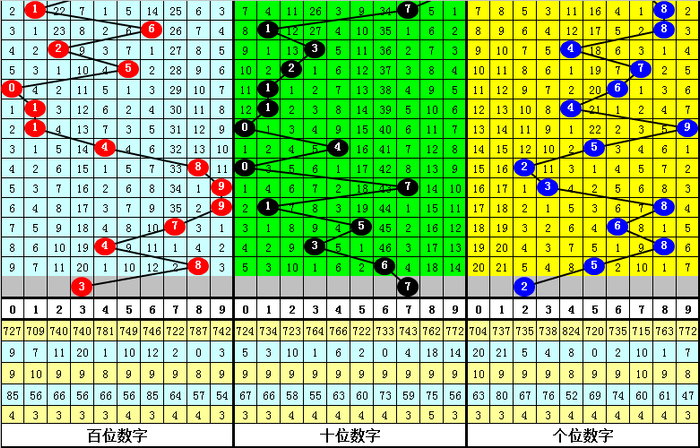 上期第二位奖号为:6,间隔46期之后开出,表现相对冷,前10期该位热码开出次数较少,本期注意该位热码逐渐回暖,关注号码7。
