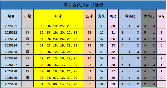 昊天双色球本期综合推荐: