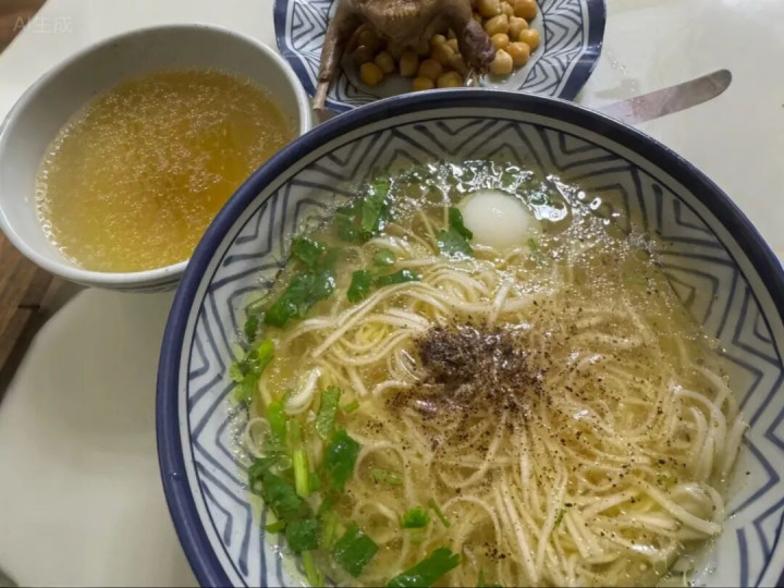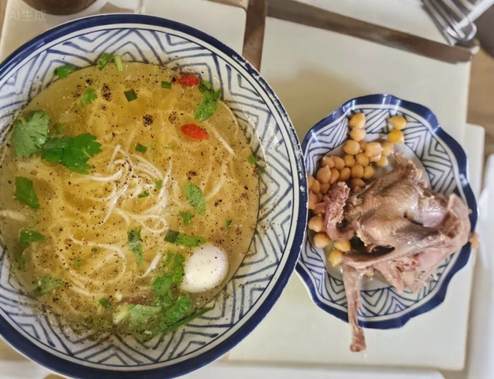 鸽子汤面比起新疆的其他早餐来说,是相对清淡的一道,汤头也非常滋补身心。一道地道的鸽子汤面,通常是汤、肉、面分开放然后自行组合。