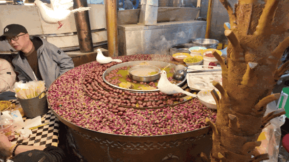 喀什人民非常爱吃鸽子,让人不得不怀疑老城广场上养那么多鸽子最终是不是都被吃了。在夜市上比较多的是烤鸽子,更受本地人喜爱的其实是炖鸽子,喀什这边叫鸽子汤。