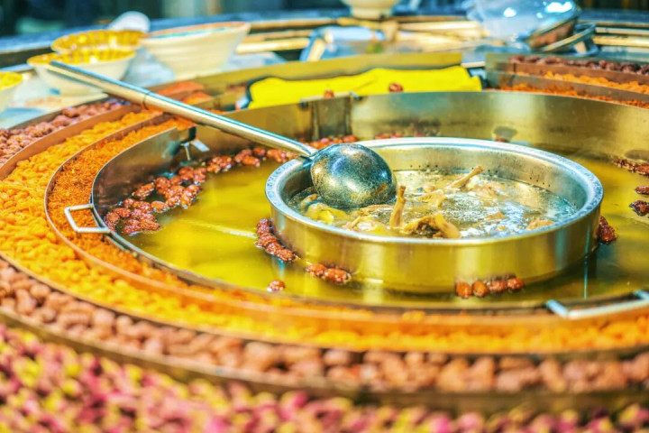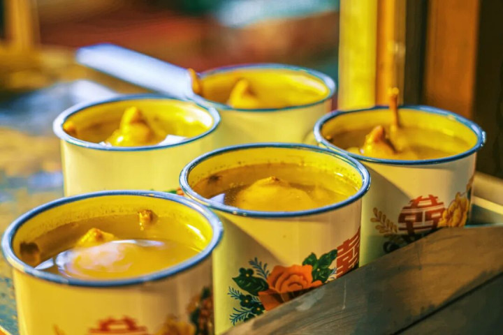 炖煮它的汤锅非常大,且“暗藏玄机”。大锅从中心向外有很多层,最中间的小锅和第二圈的小锅专门用于炖煮鸽子汤,外围依次是红花、枸杞、玫瑰、红枣等食材。这道美食很适合女孩子来食用哦,美容养颜,滋补身心。
