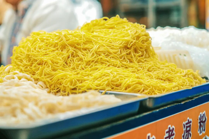 快走到大门的时候,有一家凉皮档口相当火热。店名是亚瓦格古老凉粉凉皮。店面小哥的忙碌程度简直不亚于景德镇鸡排哥。