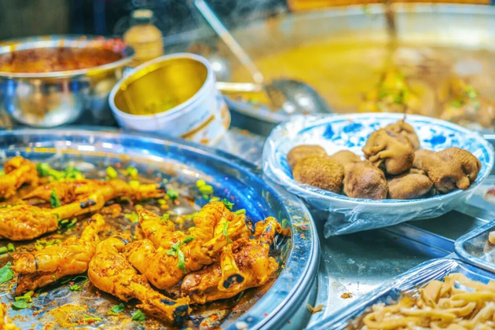 而且他们的羊蹄是卤制过再烤的,八角、桂皮、草果等十余种香料渗入羊蹄,咬一口软糯Q弹,胶质丰富。