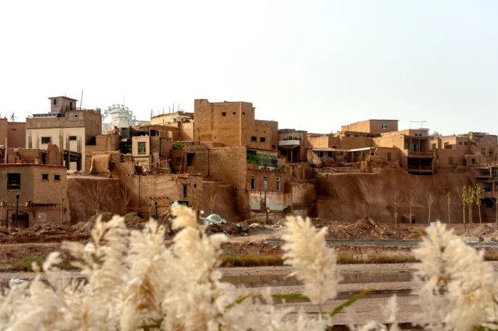 它建在一条高40多米、长800多米的黄土高崖上。虽然这片民居现在也被各种商铺、店面占领着,但也留存着维吾尔族百年的智慧。
